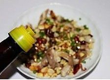 爆香的油泼在猪肚上面,嗞啦一声,花椒香气四溢,倒入花生碎,撒上葱花,