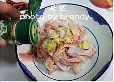 切丝,用胡椒粉,姜,和适量盐腌制十五分钟