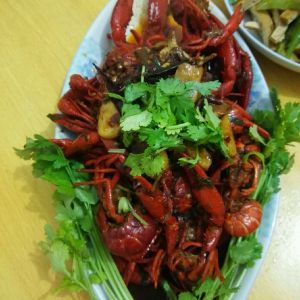 加入之前油焖过的龙虾翻炒,再加足量水,加适量盐,料酒,酱油等,加盖闷几分钟,中途翻炒。