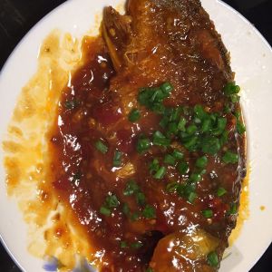 葱切丝,姜和蒜头切沫,热锅,把姜沫和蒜沫倒入锅中炒香,放1勺豆瓣酱,炒香。放入炸好的鱼,倒入事先准备的调料(2勺生抽,4勺白糖,5勺清水)让鱼入味就可以了。