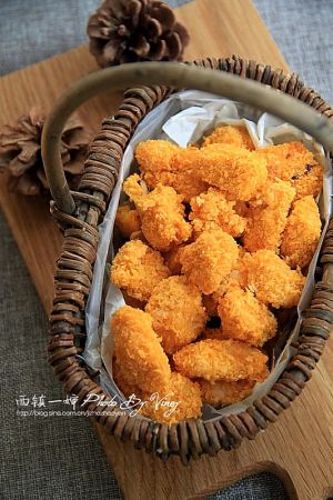 程序结束后,低油版的鸡米花就烤好啦,戴上手套趁热取出来开动吧