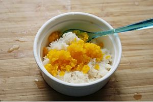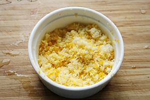 放入捣碎的咸蛋黄。