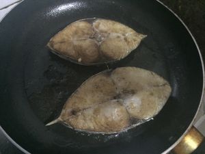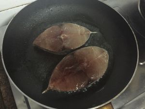 平底锅倒入适量的油烧至六七成热时放入马胶鱼,小火慢煎至金黄色