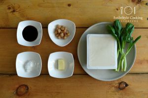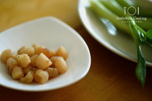 干贝300克,嫩豆腐150克,油菜心100克,姜10克,耗油15ml,白砂糖2克