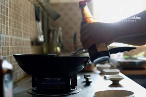 将蚝油倒入炒锅中,加入白砂糖,大火烧滚成味汁,