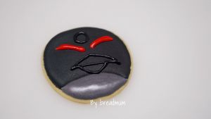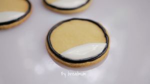 最红的胖红: 用黑色糖霜勾圈。再如图饼干下方用白色铺面糖霜填充,晾干