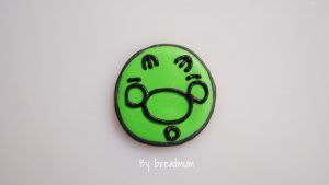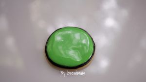 趁绿色未干用黑色糖霜点出两个可爱的鼻孔