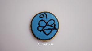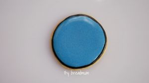 蓝色小鸟:用黑色勾线糖霜勾圈,蓝色糖霜铺满整个饼干表面,晾干