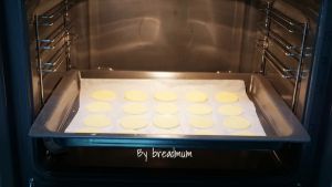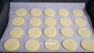 预热170度,均匀的摆放在垫有油纸的烤盘里,放入烤箱烤12-13分钟即可。