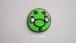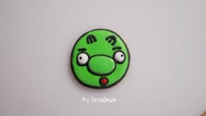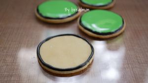 无机猪来了:用黑色糖霜勾一圈,然后用绿色糖霜对整块饼干进行铺面,晾干