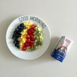 烤饼干的时候我们来切水果,蓝莓,圣女果,芒果,奇异果。再准备一盒冰酸奶。