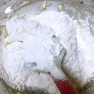 倒入蛋液(蛋液里加了一克盐),再次拌匀揉成团。放入冰箱15到30分钟。