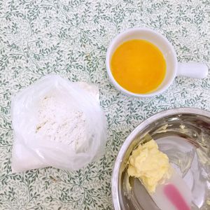 蛋液,糖粉加低粉,黄油。另外备齐水果和酸奶。
