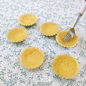 取出,装入派盘里,用手从中间往四边推,可以薄一些哦。用叉子扎满小洞。放入预热好烤箱,165度烤25到30分钟,具体要看自己烤箱的温度。