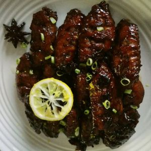 锅底放油炒香姜葱八角放入鸡翅煎一下