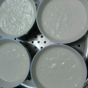 蒸熟见光面形成第一片面后把备用的一汤勺子牛奶分别倒入四碗奶面再闷五分钟放凉形成双皮