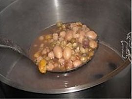 豆子煮好了,放进冰片糖,大火煮至糖融就可以了。