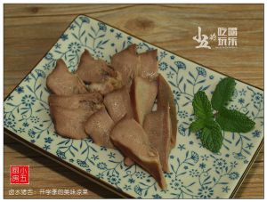 转小火,煮约1个小时左右熄火,让猪舌在汤汁中浸至汤汁凉却。