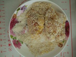 依次裹上蛋液和面包糠