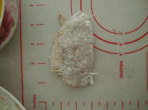 用牙签固定住并裹上一层面粉