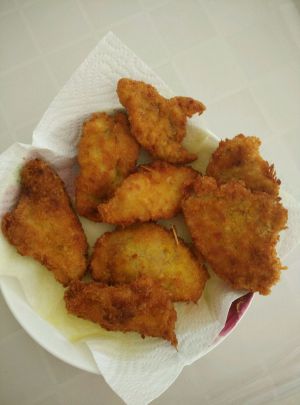 炸成金黄色,并用吸油纸吸去多余油份