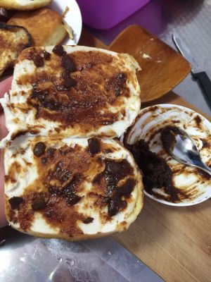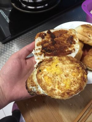 先把馒头在中间切开,忘记拍照片了,把鸡蛋打散,馒头均有的裹上鸡蛋!