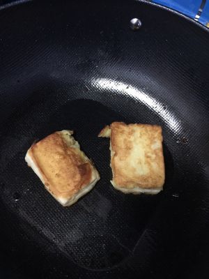 放少许油,把馒头煎至金黄备用!