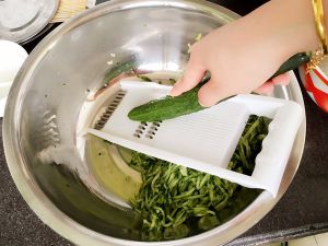 用力将黄瓜的水分挤出