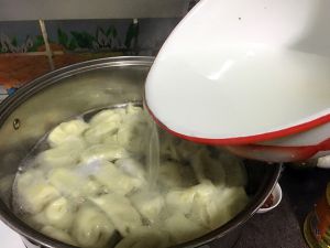 浇凉水~再煮开~往复三次!饺子熟啦!