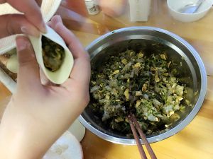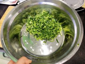 放盐卤一下,静置十五分钟,这样会让黄瓜的水分迅速流出来,饺子馅才不会太水