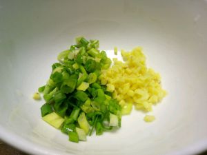 在加入姜末和大半的葱花 另一半葱花粥熬好了用来撒在粥上