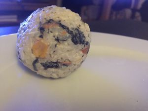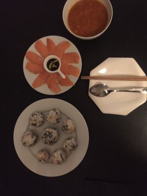 放入一罐金枪鱼罐头 用保鲜袋包着手 把电饭锅内胆的饭和所有东西搅拌,捏来捏去
