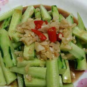 首先黄瓜切小段小段小段(因为家里只有一根黄瓜所以切的比较小段,有多的可以切大块点)~然后拍拍拍【原谅我懒就随意拍了下,不过拍不拍也无所谓】。蒜剁成蒜末,小辣椒也切小段