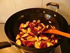 坐锅热油,放茄子,茄子稍软加剁椒、少量老抽
