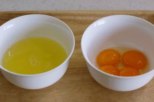 鸡蛋磕开,把蛋黄和蛋清分别分离到两个碗中打散。