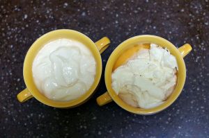 左边是过滤6小时之后奶酪的样子,右边是过滤12小时后的样子。