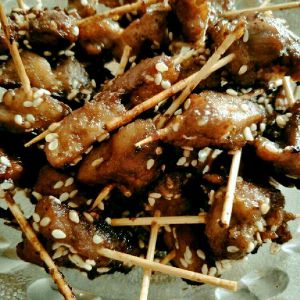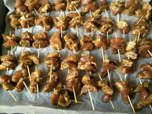 4.穿上牙签,放烤盘,烤箱180度,20分钟左右,中途可以翻一下
