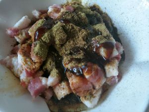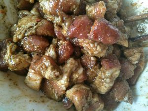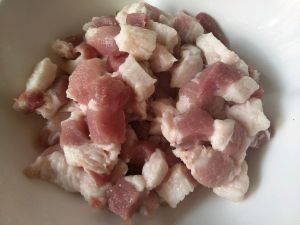 1.五花肉,清洗干净,切小丁。我没有用纯瘦肉,因为儿子咬不动