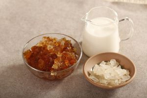 准备材料:桃胶 牛奶 冰糖