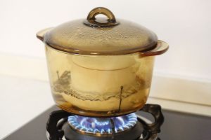 把清理好的桃胶放进炖锅里,加入刚好没过桃胶的水,因为一会还要加牛奶,所以水量不要加太多哦!