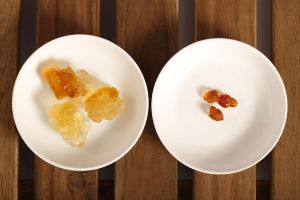附上一张桃胶泡发前泡发后的对比图,大家在用量上会比较好拿捏