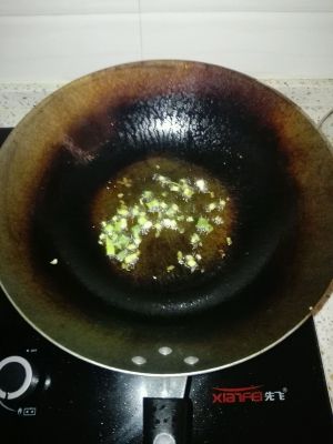 2.鸡蛋单独炒好以后放旁边备用,从新起火热油后关小火先放小葱煸出香味。