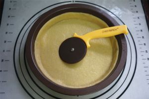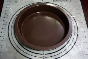 撕开硅胶垫,然后将派盘倒扣在面片上,反转。