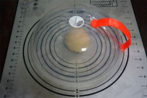 接着用擀面杖将面团擀成3毫米厚的圆片,尽量擀圆。