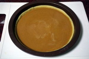将馅料过滤到派皮上,放入烤箱中层,上下火200度烤15分钟后转上下火175度烤25分钟直至馅料凝固即可。