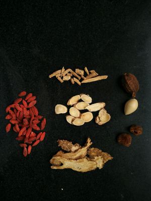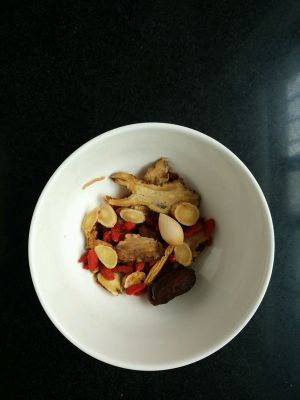 准备好药材。对我配方里的药材用量不太清楚的,可以参考这张图。其中正上方的党参可以多放一些,也可以替换成别的参。