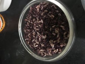 紫米燕麦米先泡2h冷水,之后放入压力锅煮30mins,沥干水备用