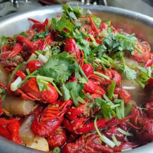 放入适量的油下魔芋放适量盐豆瓣酱生姜蒜子炒香,放入炸好的小龙虾翻炒,加一瓶啤酒,啤酒煮干即可捞出放香菜