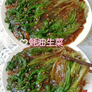 生菜冲洗一下,控水。大蒜切末。起锅烧油,放入蒜末翻炒一下,放入2勺生抽,1勺蚝油,适量盐。