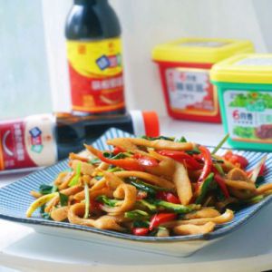 放入老抽,大约2ml左右,继续翻炒半分钟就可以了,因为生抽或者味极鲜的味道都是调制好的,也不需要额外添加盐和鸡精。